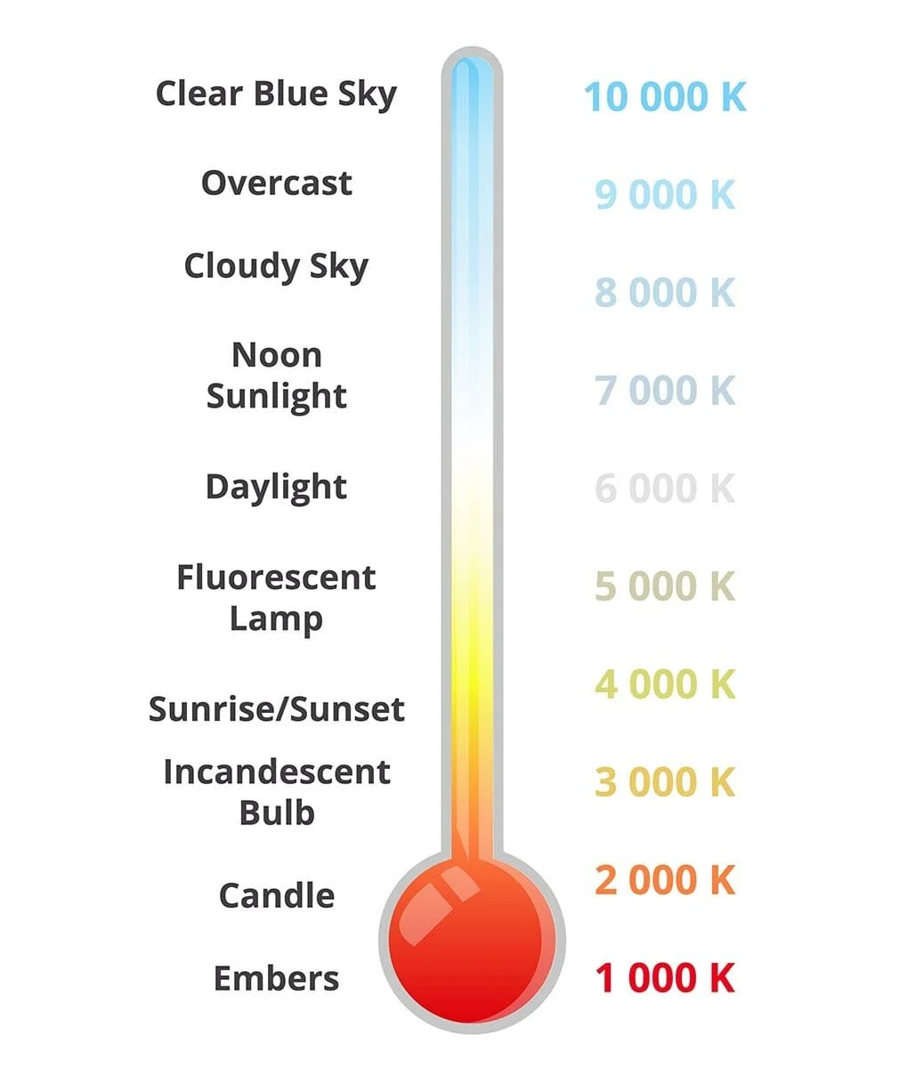 7,000K+ – Cool, blue light (shade, overcast skies)